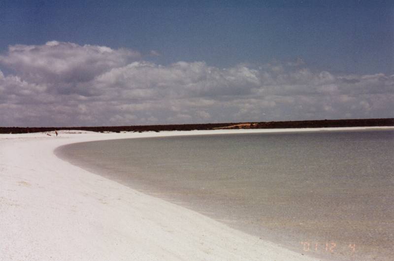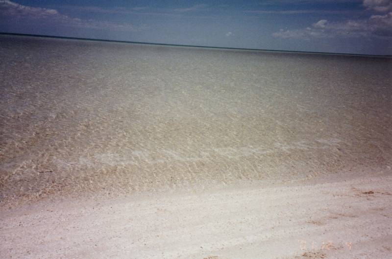 out into a seemingly endless sandy shoreline stretching away into infinity.